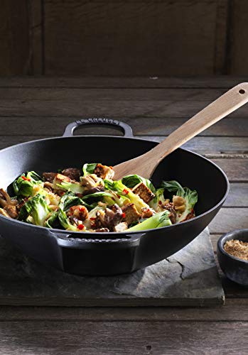Le Creuset Wok in Ghisa, Rotondo, Ø 32 cm, Adatto a Tutte le Fonti di Calore incl. Induzione, 4,607 kg, Nero