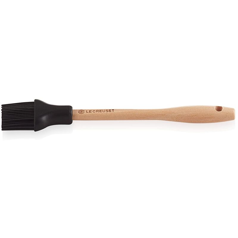 Pennello per ungere in silicone con resistente manico in legno, ottimo per pentole antiaderenti o vetrificate, protegge dai graffi, Testa flessibile in silicone, setole corte e coniche per far scendere i liquidi lentamente e spalmarli facile, cuscinetto di appoggio in silicone per proteggere i bordi delle pentole, Silicone di ottima qualità, antimacchia, non assorbe gli odori, resistente al calore fino a 250° C, Semplice da usare e pulire, foro per appenderlo comodo, testa removibile lavabile in lavastoviglie, manico in legno facile da lavare a mano, Contenuto: 1x Le Creuset Mini pennello Classic, Materiale: Silicone, Dimensioni 17.5 x 2.54 x 1.3 cm, Colore: Nero Lucido, 93000845140300