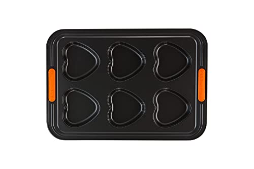 Le Creuset Stampo Antiaderente per 6 Muffin a Forma di Cuore, PFOA Free, Resistente alle Sostanze Acide, Finitura in Acciaio al Carbonio, Antracite/Arancio