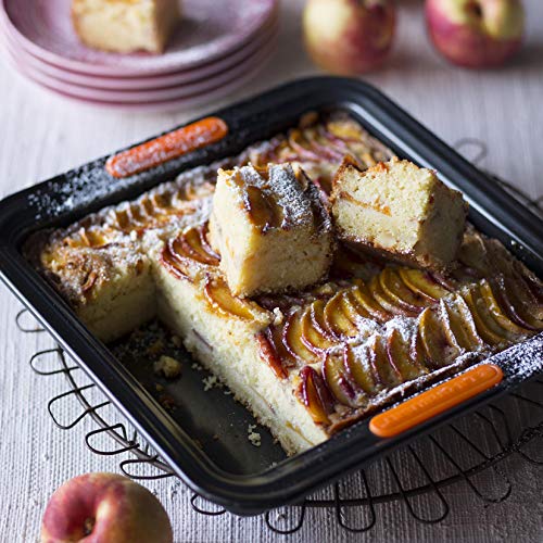 Le Creuset Stampo Antiaderente, Quadrato, 23 x 23 x 5 cm, Resistente alle Sostanze Acide, Finitura in Acciaio al Carbonio, Antracite,Arancione, 941009290