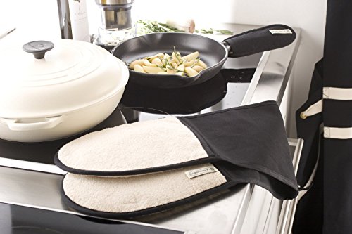 Prodotto 2: Doppio guanto da forno in tela di cotone resistente al calore per infornare (fino a 250°C), trasportare e servire in tavola pirofile, teglie, pentole e padelle calde