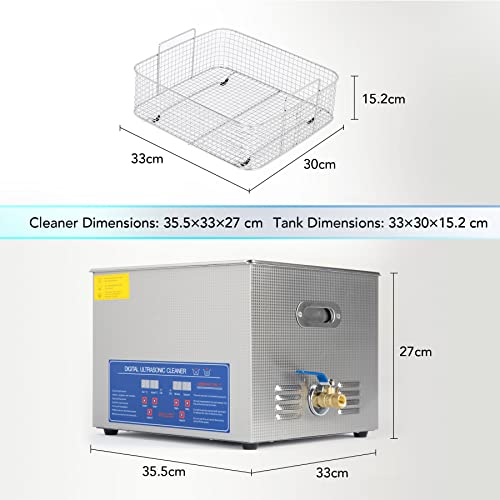 POTENZA AD ULTRASUONI: Il pulitore ad ultrasuoni genera un'onda ultrasonica a 40 kHz con serbatoio da 15L, pulisce a fondo senza danneggiare i tuoi oggetti di valore, ha una potenza di riscaldamento di 400W e una potenza di ultrasuoni di 360W, pulisce facilmente e completamente i tuoi oggetti.
