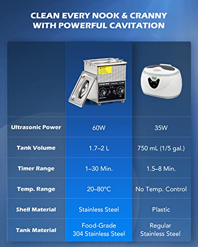 60W CAVITAZIONE ULTRASONICA: Questo pulitore ad ultrasuoni industriale utilizza 60 W di potenza per riempire il serbatoio 2 L con bolle di cavitazione, utilizzando la forza delle loro piccole implosioni per pulire accuratamente e professionalmente anche le superfici piccole e intricate;