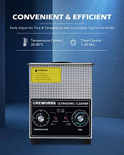 CREWORKS 2L Pulitore ad Ultrasuoni con Riscaldatore e Timer 60W Vasca ad Ultrasuoni Industriale in Acciaio Inossidabile per Casa e Laboratorio Professionale per Gioielli Occhiali Orologi