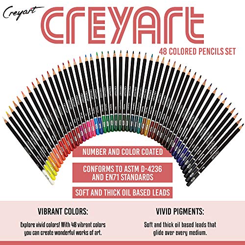 Pigmenti vividi: Le matite colorate Creyart offrono una ricca saturazione del colore che si stende su qualsiasi supporto. Sono perfette per qualsiasi progetto. Le mine morbide e spesse a base di olio offrono una colorazione uniforme.