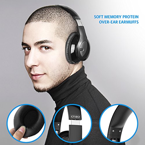 Criacr Auricolare Bluetooth Senza Fili, Cuffie Bluetooth, Cuffie per lettore MP3, Fascia Girevole Pieghevole, Microfono Incorporato, Auricolari Traspiranti per Telefono Cellulare, Tablet, PC (Nero)