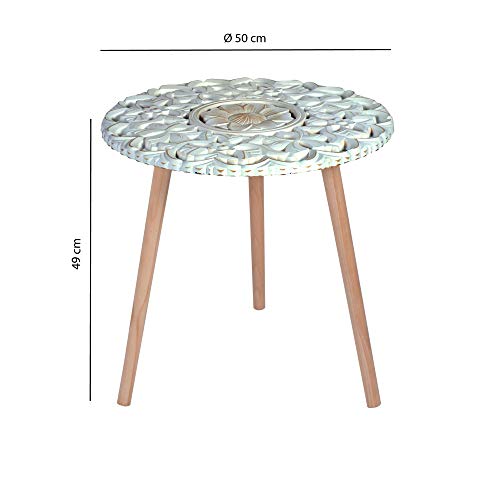 Il tavolino Mint, è ottimo per chi cerca stile e comodità, il piano è un tondo completamente intarsiato, il cui design ricorda quello dei vecchi merletti