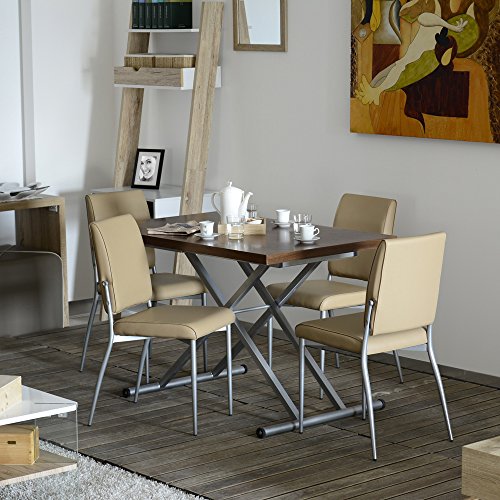 Cribel Trilly Set Sedia, Metallo Satinato, Similpelle, Beige, 4 Pezzi