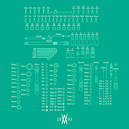 Set cricchetti bussole con bocca esagonale e punte PH e PZ da 171 pezzi | WIESEMANN 80119 | | 1/2″ | 3/8″ | 1/4″ | avvitatore