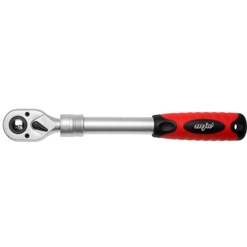 La manopola del cricchetto è realizzata con alta precisione e consente di lavorare in condizioni difficili, servizi automobilistici, impianti di produzione o aziende agricole. L'impugnatura dritta ed estensibile permette all'utente di raggiungere punti difficili da raggiungere, e il sistema di 72 nottolini consente piccoli movimenti molto precisi dove c'è poco spazio per avvitare/svitare. Lunghezza cricchetto 300 mm, completamente estesa 440 mm, le chiavi a bussola a 6 punte MJW si adattano perfettamente al cricchetto da 1/2"