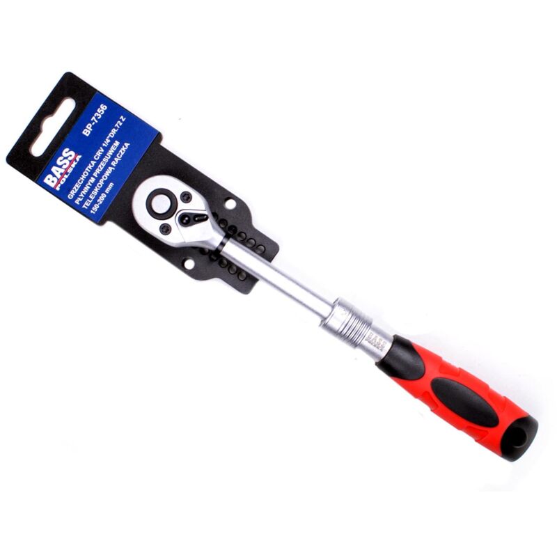 CRICCHETTO DA 1/4" CON MANICO TELESCOPICO, RUOTA A CRICCHETTO DATI TECNICI Manico: 1/4" Numero di denti: 72 Realizzato in acciaio CV di alta qualità Funzione: destra / sinistra Manico telescopico: 150-200 mm INFORMAZIONI SULLA CHIAVE A CRICCHETTO Cricchetto perfettamente profilato chiave con impugnatura da 1/4", con struttura robusta in acciaio CV, resistente ai danni meccanici. Il cricchetto è destinato all'uso professionale per lavori con carichi pesanti. Dotato di meccanismo a cricchetto a 72 denti, scorrimento fluido, impugnatura telescopica e una funzione di rotazione destra/sinistra sono sinonimo di alta qualità di lavorazione, affidabilità operativa e funzionamento senza problemi.