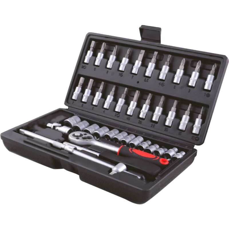 Set 41 Pz cricchetto reversibile in Astuccio con accessori. L'astucco per rimessaggio include - 1x chiave a cricchetto revesribile 72 Denti - 21x inserti (PH1 / PH2 / PH3 / PZ1 / PZ2 / PZ3 / T10 / T15 / T20 / T25 / T30 / T40 / FD4 / FD 5.5 / FD7 / HW3 / H4 / HW5 / HW6 / HW7 / HW8 ) - 13x Bussole 1/4 (4/4,5/5/5,5/6/7/8/9/10/11/12/13/14 - 1x estensione 1/4 lunga 10Cm - 1x Barra a T regolabile - 1x estensione a snodo 1/4 - 1x Estensione magnetica 1/4 - 1x Astuccio BMC richiubile