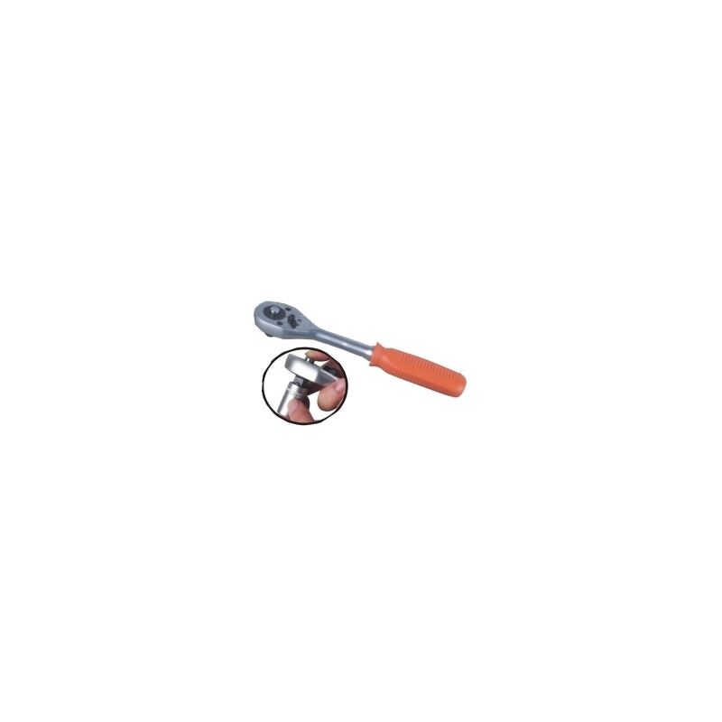 Cricchetto reversibile per bussola 3/8 - In acciaio cromo vanadio con finitura cromata - Attacco bussola con bloccaggio di sicurezza - Impugnatura ergonomica antiscivolo