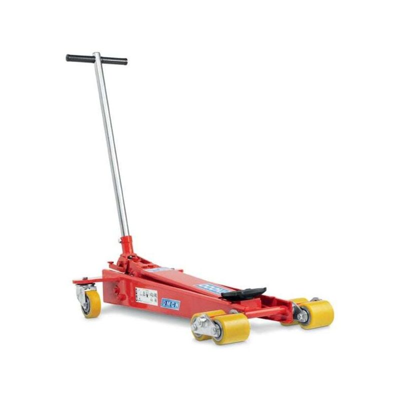Cric a carrello OMCN Cric a carrello OMCN 1120/E Il cric a carrello OMCN 1120/E fa parte della Serie Special, caratterizzata da doppi rulli anteriori basculanti e ruote posteriori girevoli in poliuretano consentendo di poter muovere questi sollevatori anche sui grigliati, rendendoli particolarmente adatti per interventi in fase di soccorsi stradali. Il cric possiede un'alzata che va dai 130 ai 760mm e una capacità di sollevamento di 2000kg mentre il manico è ergonomico e con comando di discesa tramite pedale e il supporto è un piattello in acciaio da 130mm di diametro. Il sollevatore è dotato di 6 ruote di cui 4 fisse frontali basculanti e 2 girevoli posteriori in poliuretano e la robusta struttura in acciaio pesante rende questo cric un prodotto dalla grandissima affidabilità. Il prodotto ha un peso complessivo di 65kg. Caratteristiche: Capacità di sollevamento di 2000kg Alzata da min 130mm a max 760mm Comando di discesa a pedale Caratteristiche Tecniche: Capacità di sollevamento