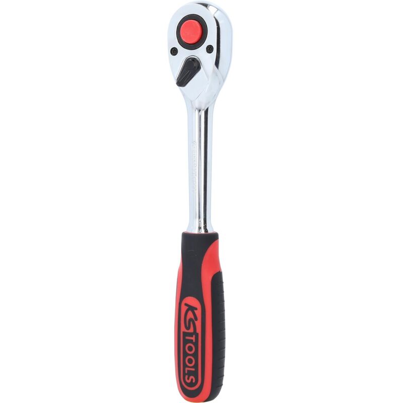 A norma DIN 3122 / ISO 3315 Quadro di manovra DIN 3120 / ISO 1174 con arresto a sfera Reversibile Preciso meccanismo a cricchetto a 72 denti Con sistema di sgancio rapido tramite pulsante sulla testa a cricco Impugnatura ergonomica bicomponente Leva di inversione di facile utilizzo Cromate lucide Cromo-vanadio Dente 72 Peso del tessuto 550 Diametro D 40.0 Attributo di funzione 2 Commutabile Angolo di rotazione del ritorno 5° Dimensioni dell'imballaggio 1 Impugnatura 2-Komponentengriff Materiale1 Feinster Chrom Vanadium Stahl, hochglanz verchromt Coppia di serraggio da [Nm] 0 Azionamento quadro in pollici 1/2 Lunghezza totale L in mm 250.0 Standard DIN 3120, ISO 1174, DIN 3122, ISO 3315 Attributo di funzione 1 Einsatzschnelllösefunktion Altezza della testa (A) 21.0 Coppia di serraggio fino a [Nm] 615