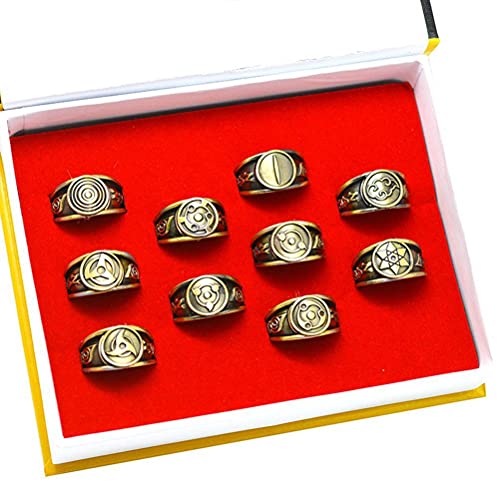 Cricia Anelli Anime Naruto, Set di 10 Pezzi insaccato con Anelli di Nuvole Rosse Anello in Metallo di Naruto Anime per Donne Ragazze Uchiha Itachi Ring Accessori per Costumi Cosplay Anelli Akatsuki