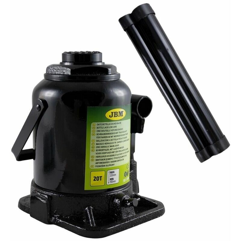 Cric Idraulico a Bottiglia Martinetto Professionale JBM Sollevatore Crick per Auto Furgoni e mezzi con assetto basso ribassato con Portata Massima 20 Ton - 20000 Kg Caratteristiche: Portata massima: 20000 Kg Altezza massima: 335 mm Altezza minima: 190 mm DESCRIZIONE: Struttura sovradimensionata in acciaio ad alta resistenza Base d'appoggio di grandi dimensioni a garanzia della massima stabilità