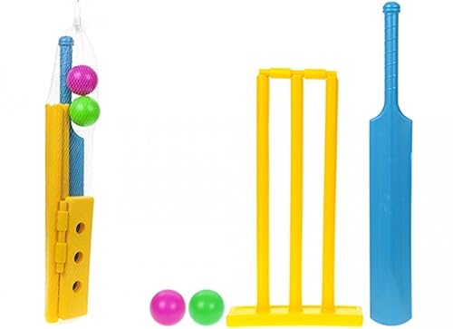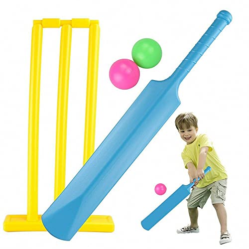 HTUK Set di cricket per bambini Set di cricket in plastica con ceppi di mazza da cricket e 2 palle da cricket per bambini bambini Junior Outdoor Garden Beach Toy Game