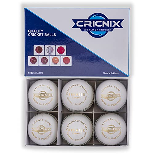 Cricnix Cricket Ball Premier White Leather 156g (3-Pack) for Seniors Match