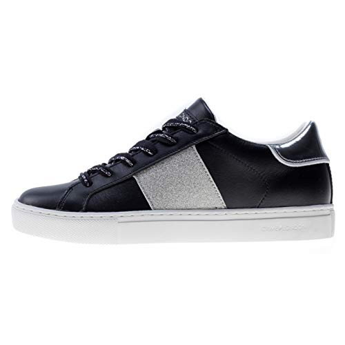 Crime London Low Top Essential 25633AA3 Pelle Nera Glitter Argento (Numeric_37)