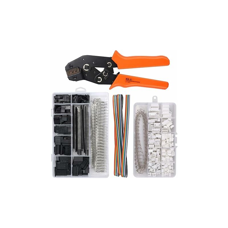 Connettore da 1550 pezzi - Viene fornito con un connettore maschio/femmina da 1550 pezzi e un cavo IDC da 1,5 m (5 piedi). Connettore JST da 460 pezzi - Femmina da 2,54 mm e maschio a 2/3/4/5/6 pin e femmina, connettore JST XHP da 2,54 mm può essere utilizzato per connettore batteria al litio, scheda di connessione PCB interna ed esterna, schede per stampanti 3D e armadi di distribuzione energia, ecc. DUREVOLE - Realizzato in acciaio ad alto tenore di carbonio e gomma isolante in TPU. forte e robusto. Design unico - Design unico, risparmio di manodopera, facile da usare e comodo da usare. STRUMENTI FAI DA TE - Questo set di pinze a crimpare può essere utilizzato per il fai-da-te elettronico, elettrodomestici e ufficio e altro ancora. < /p>