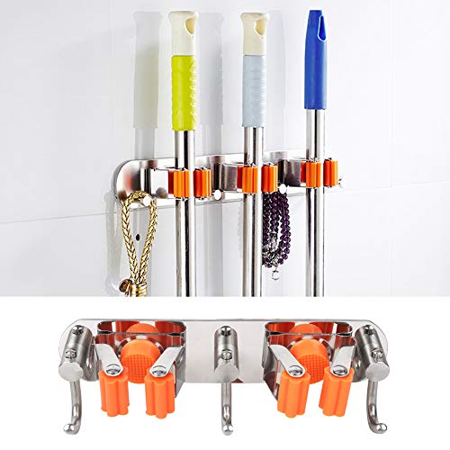 Crisis Porta Scopa e Scopa, Porta Scopa in Acciaio Inossidabile per Montaggio a Parete, Porta Scopa Antiscivolo per organizzare Attrezzi da Giardino, mop, Scope, ECC.(2 Gancio 3 Gancio)