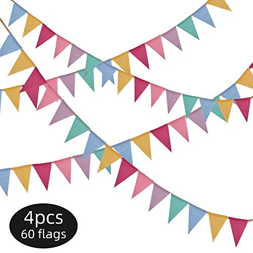 CrisLove Banner Bunting 4Pack, 5 m / 16,4 Piedi. 15 Pezzi di Bandiere Multicolori a Forma di Triangolo per Ogni stendardo, stendardi in Lino Imitato per la Decorazione del Festival di Compleanno