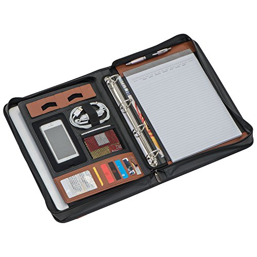 CrisMa - Cartella in pelle rigenerata, formato A4, colore: Nero/Marrone con meccanismo ad anelli, calcolatrice A4 Notepad e varie tasche