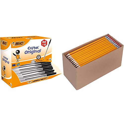 Bic Cristal Original Punta Media 1 mm Confezione 100 Penne Colore Nero & Amazon Basics - Matite pre-temperate in legno #2 HB, Confezione da 150 pezzi