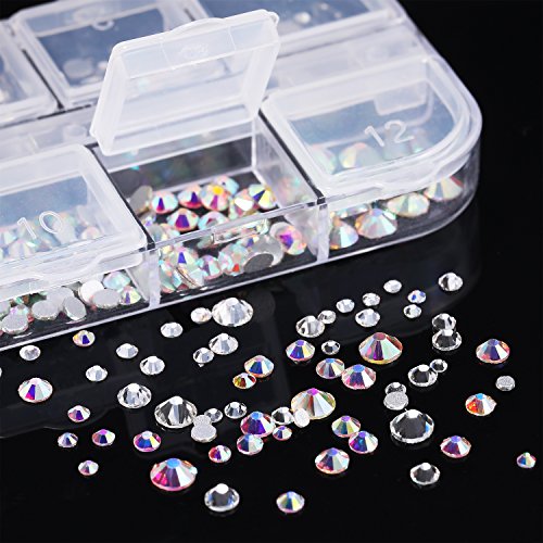 Cristallo per Unghie AB e Cristallo per Unghie Strass Trasparenti Arte Unghie Rotondo Pietre Preziose in Vetro Charm e 2 Pinzette con Scatola dell'Organizzatore, SS6 8 10 12 16 20
