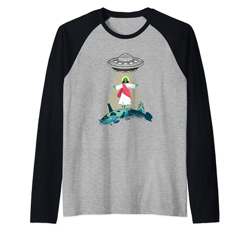 Gesù Cristo Astronave Spaceman Ufo Alien Rescuer ET Maglia con Maniche Raglan