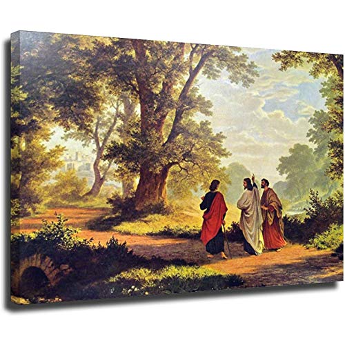 Il Cristo Risorto cammina con due uomini sulla strada per Emmaus Poster Dio Gesù su tela da parete Immagini Decor Frame-style1 80 × 120 cm