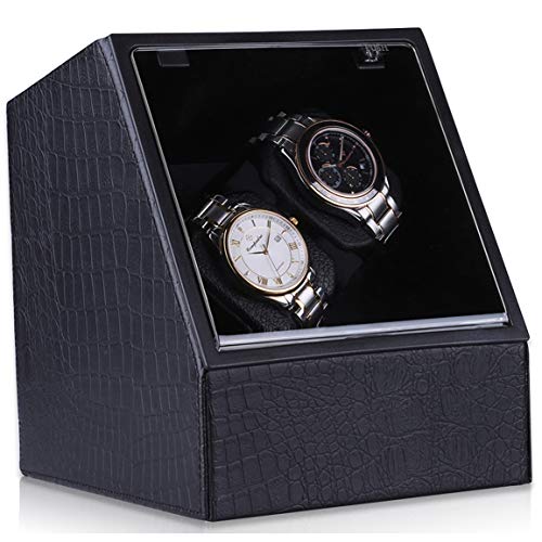 CRITIRON Watch Winder 2+0, Scatola a Carica Orologi Automotico Silenzioso in Ecopelle, Grande Vetrina Finestra per 2 Orologi, Nero