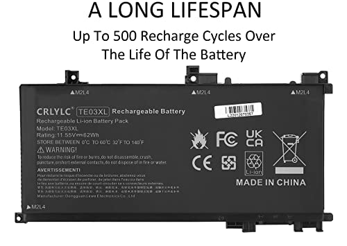 CRLYLC TE03XL Batteria per Portatile HP Pavilion 15 Omen 15-BC000 15-BC015TX BC400NA BC006NA BC411TX BC406TX BC407TX BC408TX 15-AX033DX AX009NA AX001TX AX001NS AX008NS AX038NF AX000NL AX009NG TPN-Q173
