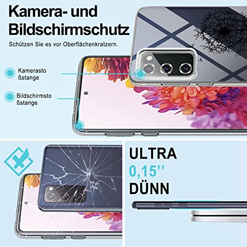 [Struttura antiscivolo]: la custodia compatibile con Samsung Galaxy S20 FE 5G custodia in silicone trasparente è realizzata in silicone TPU di alta qualità e conferisce al vostro telefono una presa perfetta anti-caduta. Non lasciare che il tuo smartphone scivoli più dalle mani.