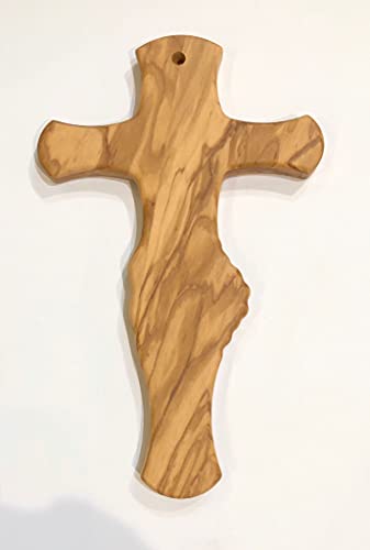 IL SOLE Croce dell'Amicizia da parete in legno di ulivo, in varie misure, con certificato di garanzia, prodotto nelle vicinanze di Assisi (MEDIO 20X12,5 CM)