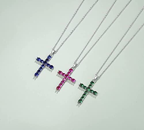 Croce Ciondolo Collana in Argento 925 con Zaffiro Blu Sintetica Regalo Gioielli per Donna Ragazza - Catena Lunghezza: 40 + 5 cm