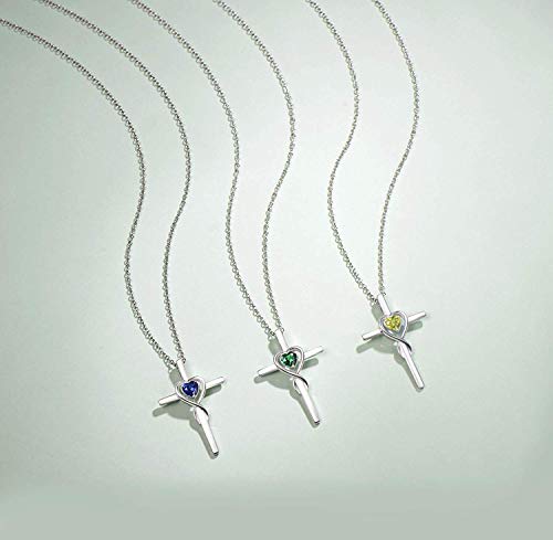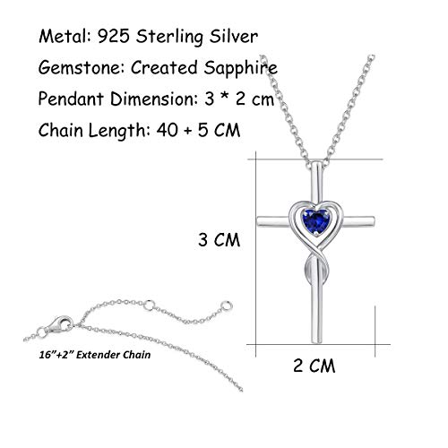 Croce Ciondolo Collana Infinito Cuore per Donna in Argento 925 con Zaffiro Blu Sintetico - Catena Lunghezza: 40 + 5 cm