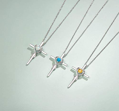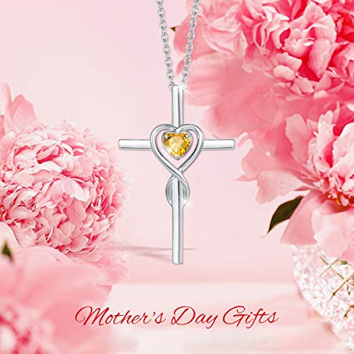 Croce Ciondolo Collana Infinito Cuore Gioielli per Donna in Argento 925 con Citrino Naturale - Catena Lunghezza: 40 + 5 cm