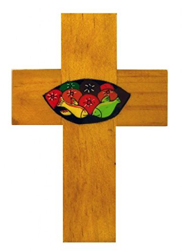 Croce di pesce e pani Croce di legno 12 cms. Croce da appendere alla parete.