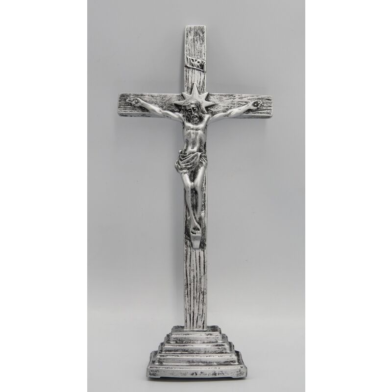 Croce della resina di trasporto stand con Crocifisso Finitura Argento Antico Figura Religiosa Gesù Croce crocifisso Figurine 114.81.4 pollici SY-1004S,Argento,11 inches