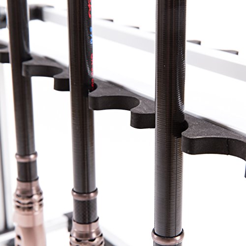 Supporto per 24 canne da pesca estremamente resistente, stabile e facile da montare.