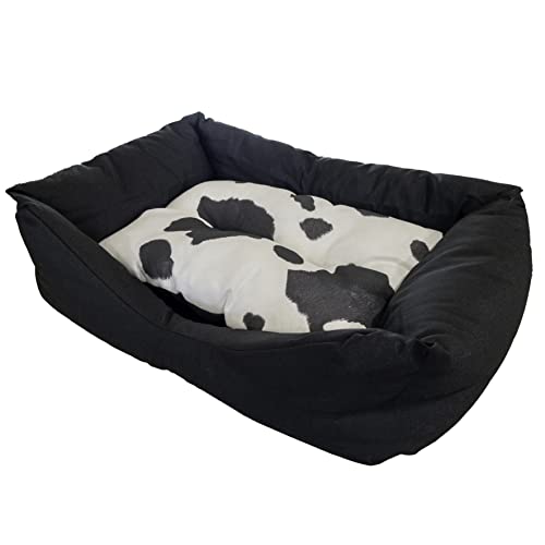 Divanetto per cani, cuccetta fantasia mucca con bordo a tinta unita