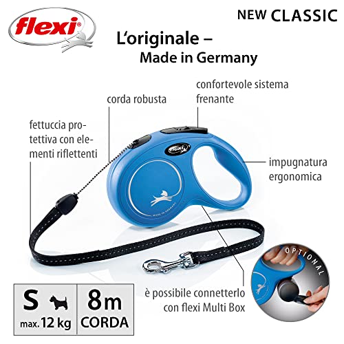 Croci Flexi New Classic Cord, Guinzaglio per cani allungabile, taglia S fino a 12 kg, lunghezza 8 Metri, colore Blu