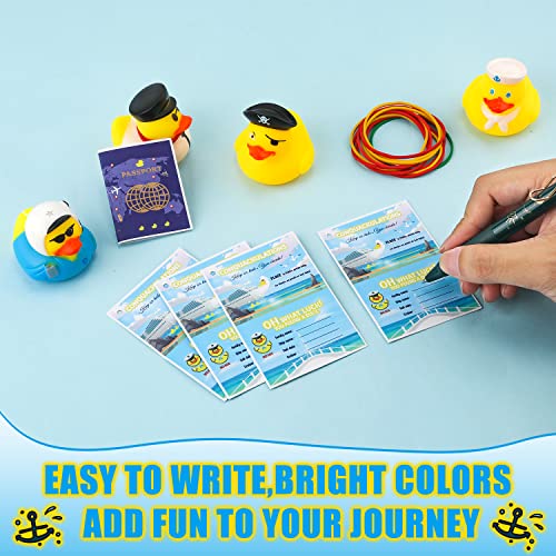 12 Set Kit da Crociera con Etichette Anatra, 12st Anatre di Gomma per Navi da Crociera (4 stili) e 12st Etichette con Elastici Paperelle di Gomma per Crociere per Bambini Giochi Nascosti