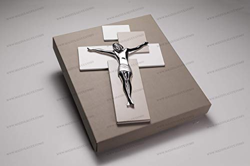 CROCIFISSO 42X30 Moderno Croce da Parete Cristo Colore Argento Legno Tortora Bianco ME12103N