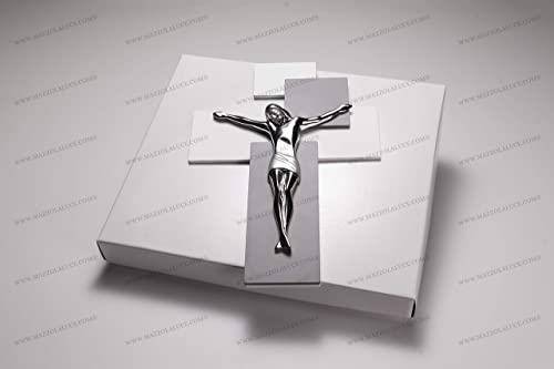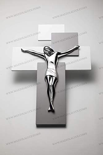 CROCIFISSO Croce Grigio Bianco da Parete 19X27 Cristo Colore Argento ME12102G
