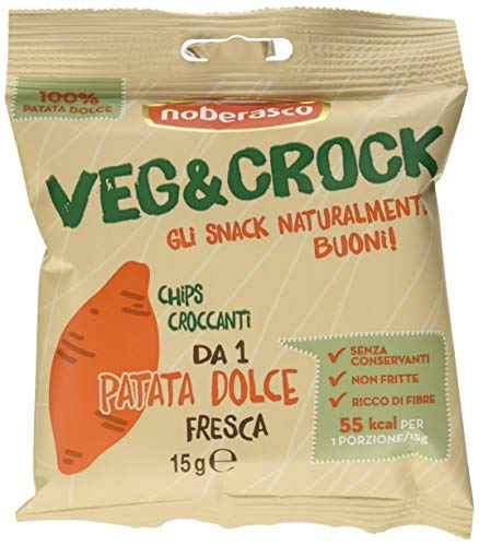 Veg&Crock Patate Dolci Noberasco- 15 g- Chips di Verdure: di Patate Dolci disidratate- Cartoncino da 12 Pezzi x 15G
