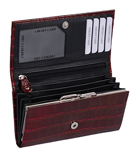 CROCO Borsellino da donna a scatto Vera Pelle, rosso 17x10cm