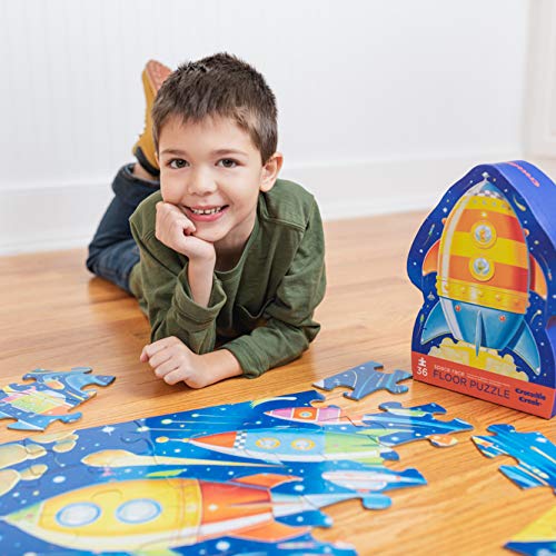 Crocodile Creek-36 PCS Shaped Space Race Puzzle, Multicolore, 40771